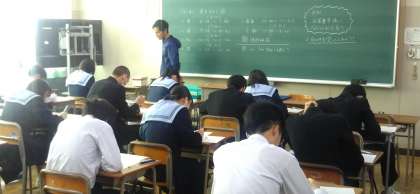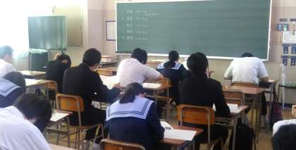 3年生は、1限目から英語・国語・社会・理科・数学の5教科の実力テストに挑み、真剣な目でテスト問題に向かっていました。自らの進路決定に向けて今の力を試す大事なテストで、18日(月)からの進路懇談での資料にもなります。