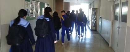 2年生の職場体験は今日が2日目です。2日目となり事業所に慣れたのか、緊張もほぐれた様子で出発していきました。
