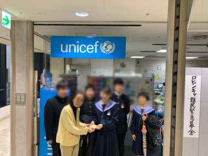 12月に生徒会が中心となって取り組んだユニセフ募金で集まった募金を、ユニセフの難波支部へ持っていきました。帰りに職員の方から花の種をいただきました。