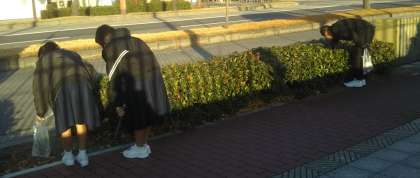 今年になって初めての"おはよう清掃"を行いました。寒い中、朝早くから多くの生徒が、火ばさみと袋を持って清掃活動に参加してくれました。