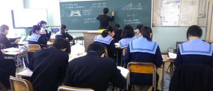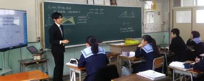 2年生の数学の授業で、先生の指導力向上を目的に、教育センターから教育指導員の先生にお越しいただき授業を参観いただきました。