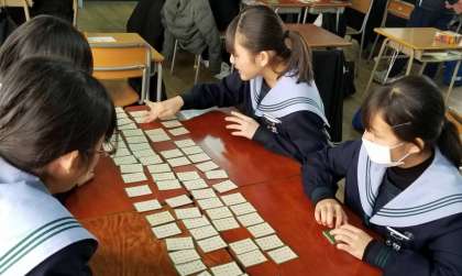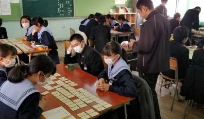 2年生は6限目に、百人一首大会のクラス予選の2回目を行いました。1年生の時より覚えている歌の数も増えていて、上の句が読まれただけで札をとることができている人も沢山いました。本番は今日の結果を受けて、7日(金)にクラス対抗で実施します。
