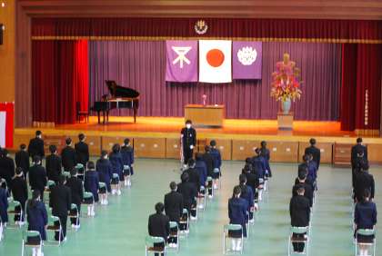 本日は良い天気の朝を迎え、内容を縮小して、第74回入学式を行いました。