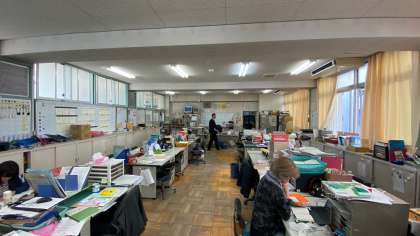 ここは、先生達が普段から打ち合わせや授業の準備を行う職員室です。