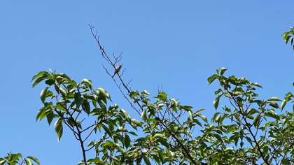 青空の広がる朝、子ども達が教室に入る登校日でした。桜の木の枝の鳥も、子ども達の登校を喜んでか、いつもより元気な様子です。