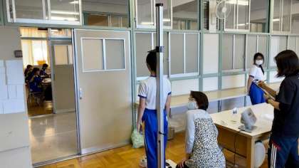 本日、授業と並行して全学年で視力検査、3年生ではさらに発育測定も実施しました。