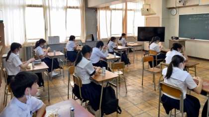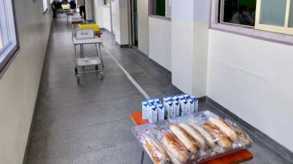 感染症予防を心がけ、静かに前を向いて食べていました。