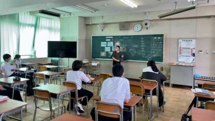 3年生の英語では、今日は太田先生とC-NET (大阪市英語指導員)の Kathryn Li Green 先生が一緒です!
