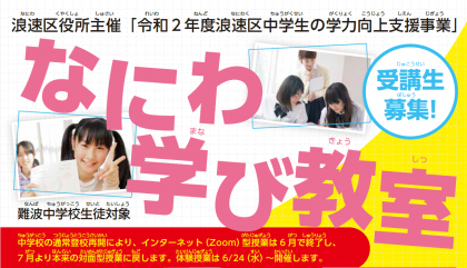 浪速区役所主催の中学生の学力向上支援事業「なにわ学び教室」の案内を掲載します!体験授業は6/24(水)から開催するそうです。