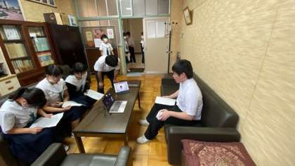 翌週の生徒会役員選挙に向け、司会や立候補者が集まって、Teamsを使っての立会演説会のリハーサルを行いました。