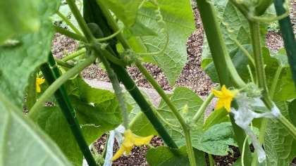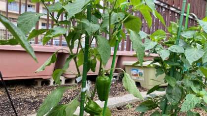 キュウリはまだまだ小さいですが、ピーマンは実が大きくなってきました。