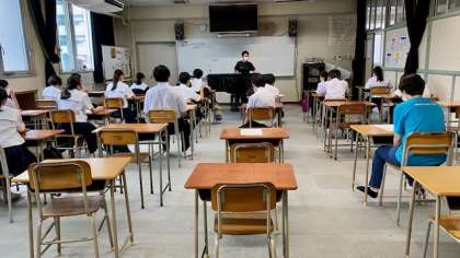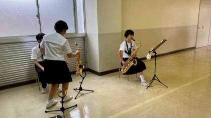 吹奏楽部の様子です。先生からの説明の後、パート別に分散しての練習です。