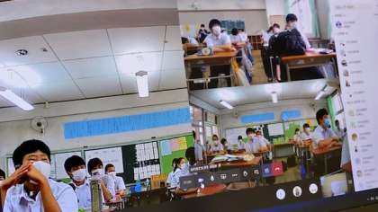各教室でも、写真のようにみんなが前の大画面を見て参加していました。