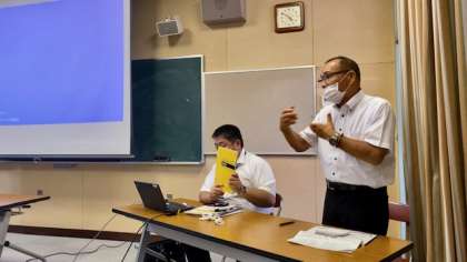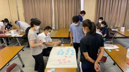 研究授業を終え、参観した教員が集まり、研究討議を行いました。また、教育センターから教育指導員・指導主事の先生から指導助言をいただきました。