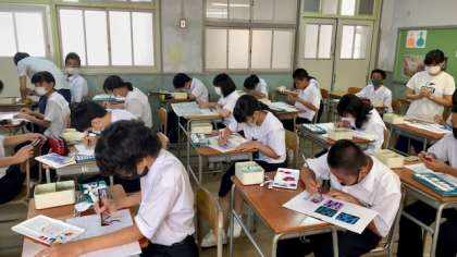 1年生の美術では、レタリングによるデザインの実習を行いました。