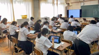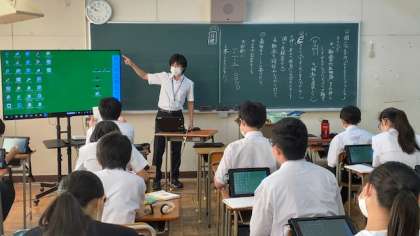 動画を見て出てくるキーワードを取り上げ、それについてネットで各々が調べ、ICT活用能力も養います。