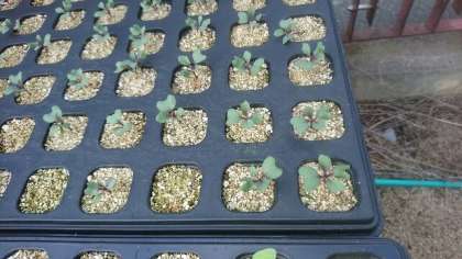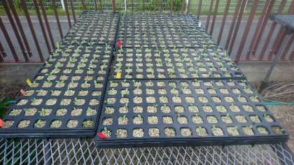 今月の17日に、種花事業でハボタンとキンセンカの播種を行いましたが、天候もよく、出芽する個体が増えてきました。
