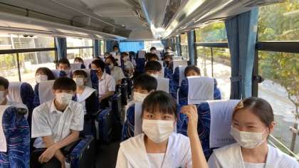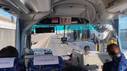 途中、2回のトイレ休憩をとり、昼食、吉野川でのラフティング体験を予定しています。