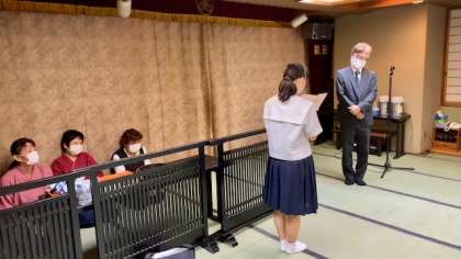 予定通り、18:40にホテルに到着し、入館式を行いました。これから食事です!