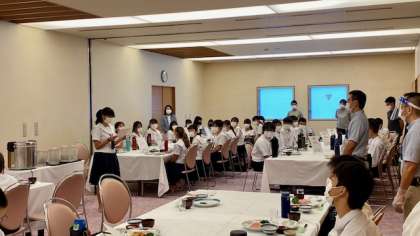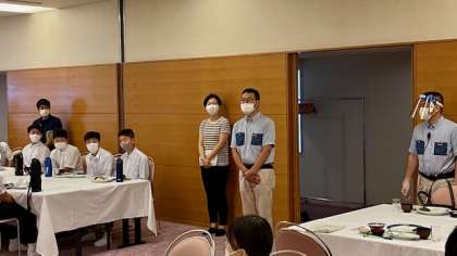 生徒代表からホテルのスタッフの皆さんに。