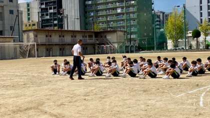今日は1年生の体育の授業(陸上競技)で、藤川先生の授業を、他の教員が参観し、相互の授業力向上をはかりました。