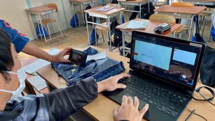 明日のオンライン授業の試行実施のために、本日、接続確認やツールの使い方を学んでいます。