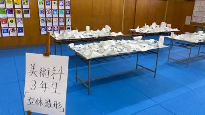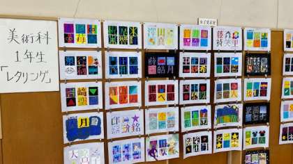1年生はレタリング、2年生はピクトグラム(絵文字)、3年生は立体造形。それぞれ考え工夫された作品ばかりです。