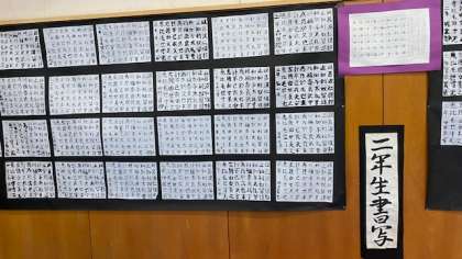 こちらは1・2年の書道作品です。繊細で力強い作品が並んでいます。
