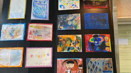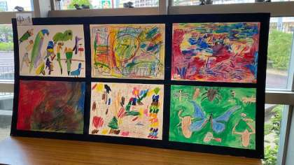 ?難波支援学校の生徒作品も、玄関を飾っていただきました。