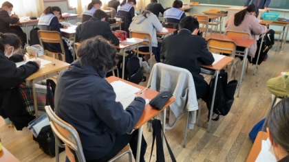 今日は特に寒いですね。教室でも、エアコンでの室温管理をしながらも換気を行っていますが、この厳冬期、健康面への影響も懸念されるため、特別に校内での防寒着の着用を認めています。