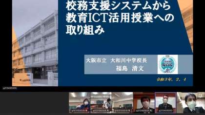 本日の校内研修では、お忙しい中、大和川中学校の福島校長先生、ICT推進リーダーの小谷先生を講師としてオンラインで取組を紹介していただきました。ありがとうございます!