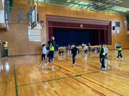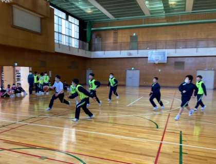 攻守盛んにコートを走り回り、一生懸命取り組み、バスケットボール部が審判を担当し、自分たちで試合を行いました。