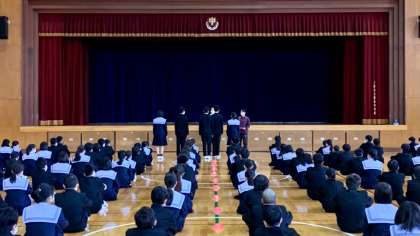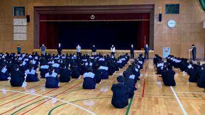各学年所属および担任の先生たちの紹介、前期生徒会役員の認証式も行いました。