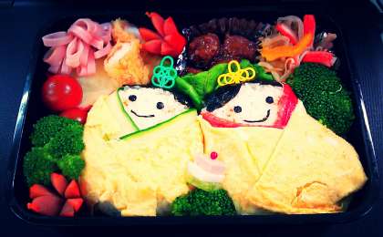 昼食時に かわいいお内裏様とお雛様のお弁当を見つけたので紹介します!