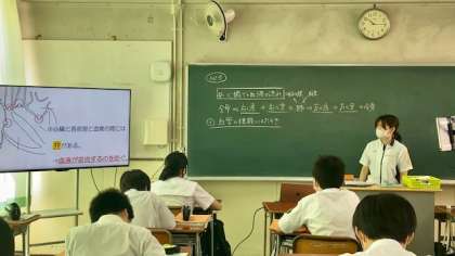 2年生理科の授業では、心臓での血液の流れについてについて学習していました。