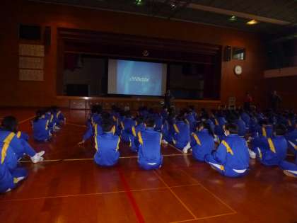 本日は土曜授業で、地域清掃を本校生徒とPTAのみなさんとで行う予定でしたが、昨晩からの雨が止まず、DVDを使った環境学習を行いました。