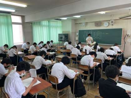 3年生は1回目の実力テストを各クラスと別室教室を使用して実施しています。