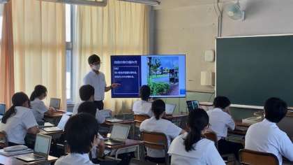 1年生の理科の時間では、自身にあった場合を想定し、考えられる危険性について、Googleスライドで情報共有していました。