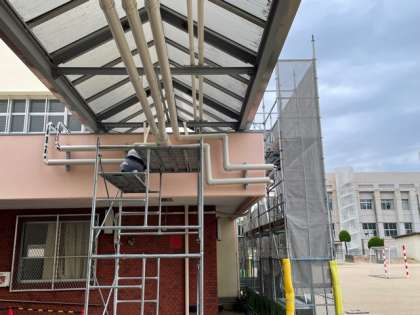 来週からは体育館内に空調機が設置されます。体育館部活動生徒へは迷惑をかけます。