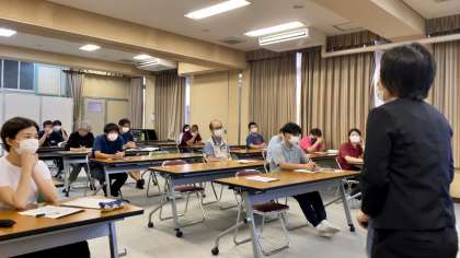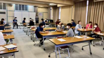 放課後、子どもたちの言語能力の向上のため、教員はどのようなことに留意して授業展開すればいいのか、研修を行いました。