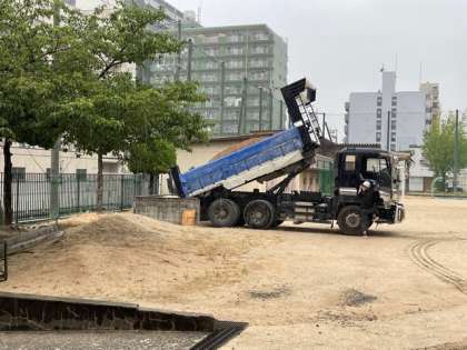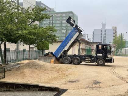 運ばれた土を使って、グランドの整備を行い、授業や部活動のために使用します。