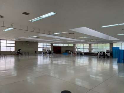広い食堂を1日利用して教職員の健康診断を行っています。