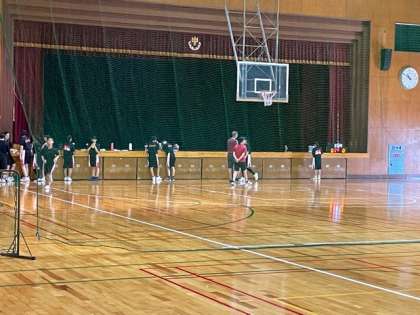 体育館ではバスケットボール部とバドミントン部が活動しています。