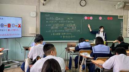 2年生の理科の時間。 化学反応式についての理解を深めています。