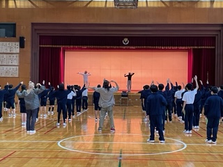 2.3年生の時と違い、身体を使ってリズム運動も多く取り入れながらの実施です。ダンス講師5人が熱心に指導してくれています。