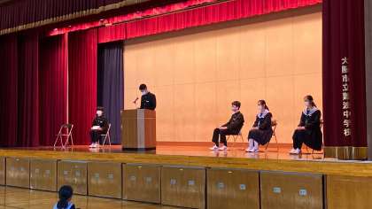 自分達の力で、難波中学校をより良くしていくために、力強い候補者の演説がありました。