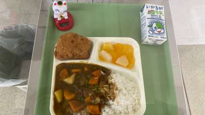 カツカレーとフルーツゼリーが。美味しそう!