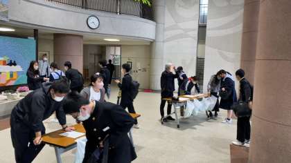 玄関ピロティーでは検尿を回収していました。