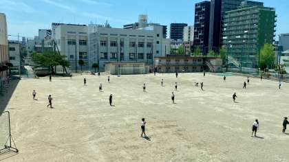 体育の授業の1コマでは、ハンドボールのキャッチボールをしていました。