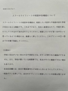 本日の全校集会でお知らせと、使用方法については写真のプリントを各教室で配布、説明しています。